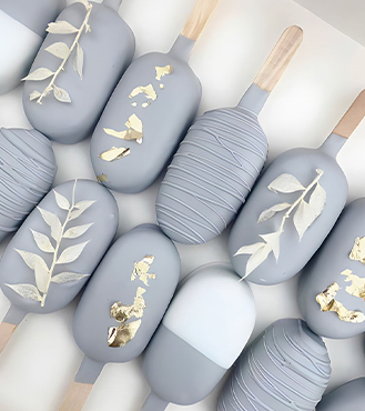 Indulge in our latest creation - the Golden Dream Cakesicles! These mouthwatering treats feature a silky smooth texture that will leave your taste buds in pure bliss. Adorned with a beautiful baby blue hue and beautifully embellished with golden designs, they're the epitome of elegance and sophistication. Available in two indulgent flavors, chocolate and red velvet, they're perfect for any occasion, from weddings to baby showers, and are a must-have for any dessert table!